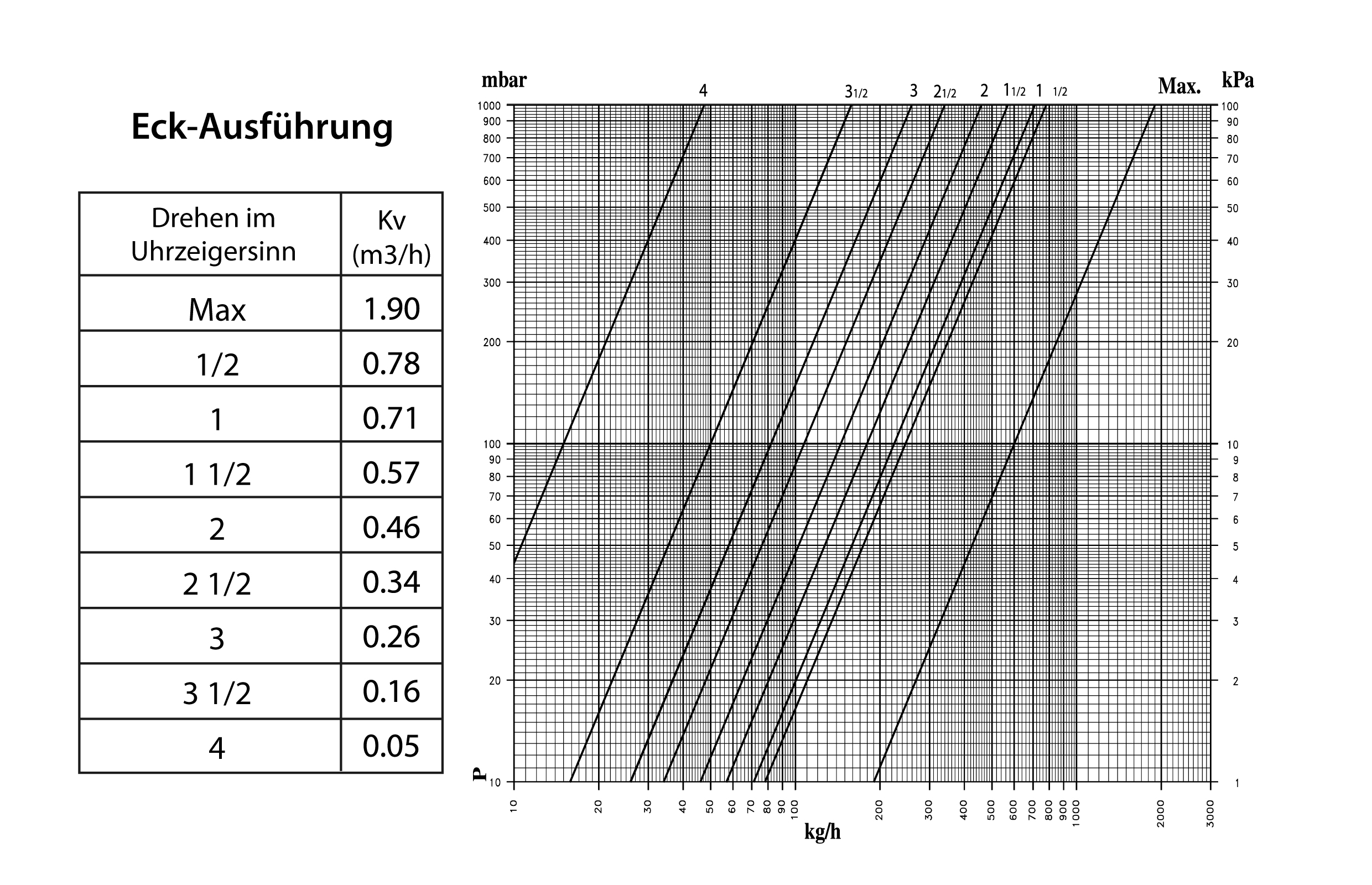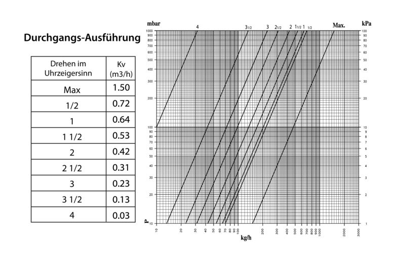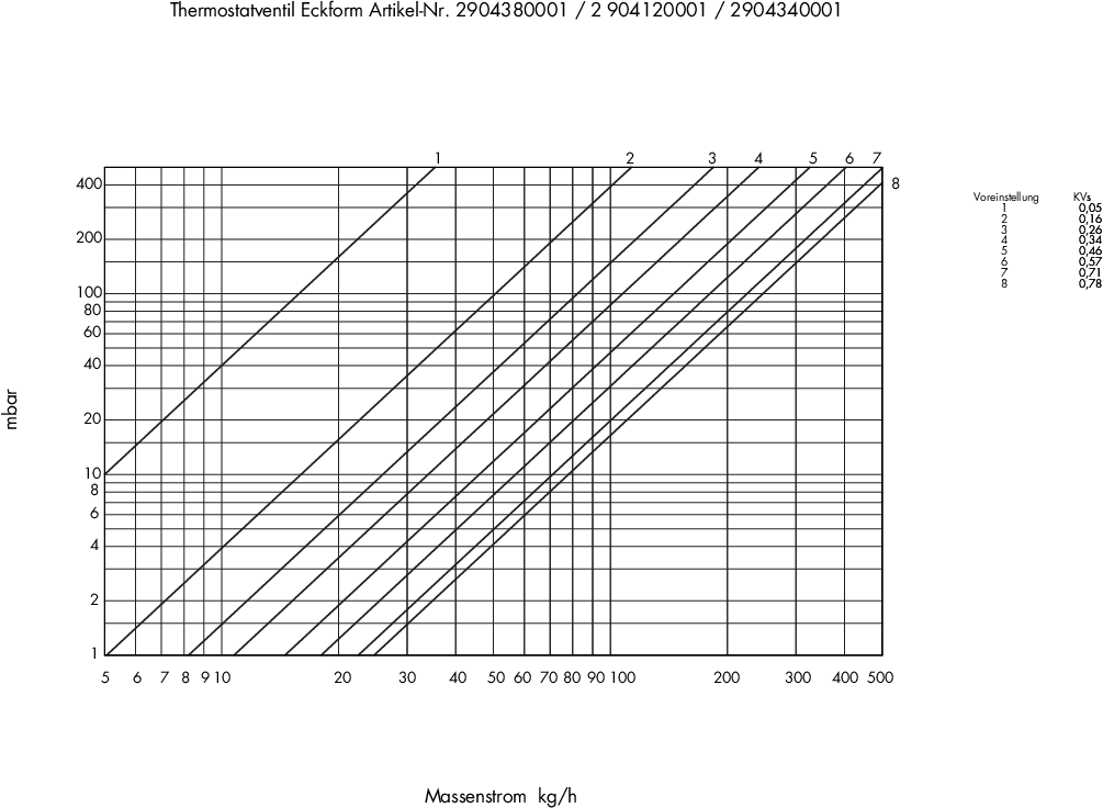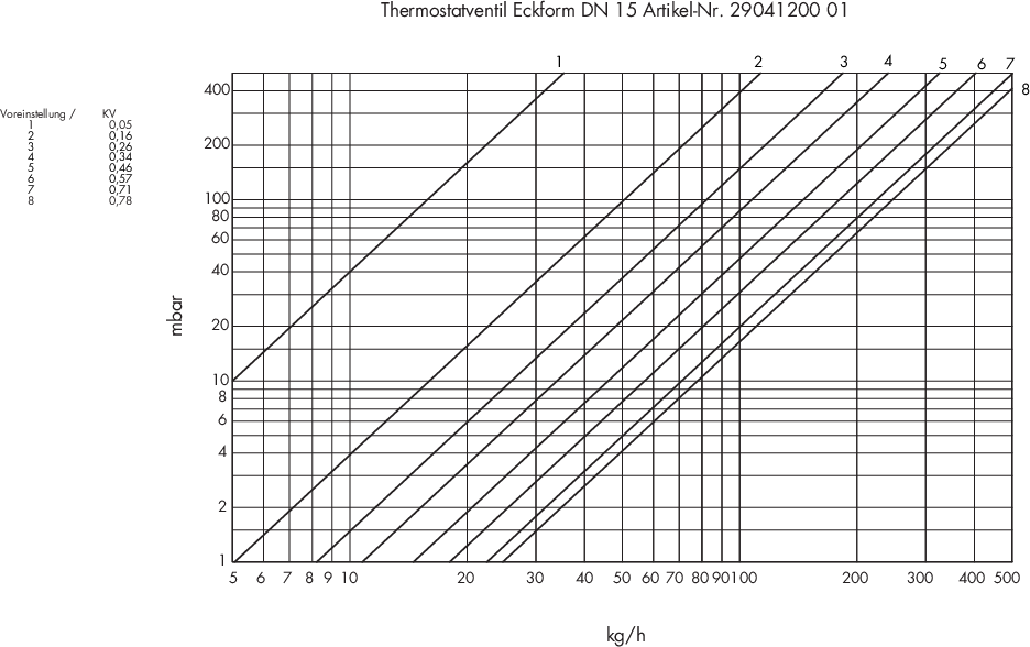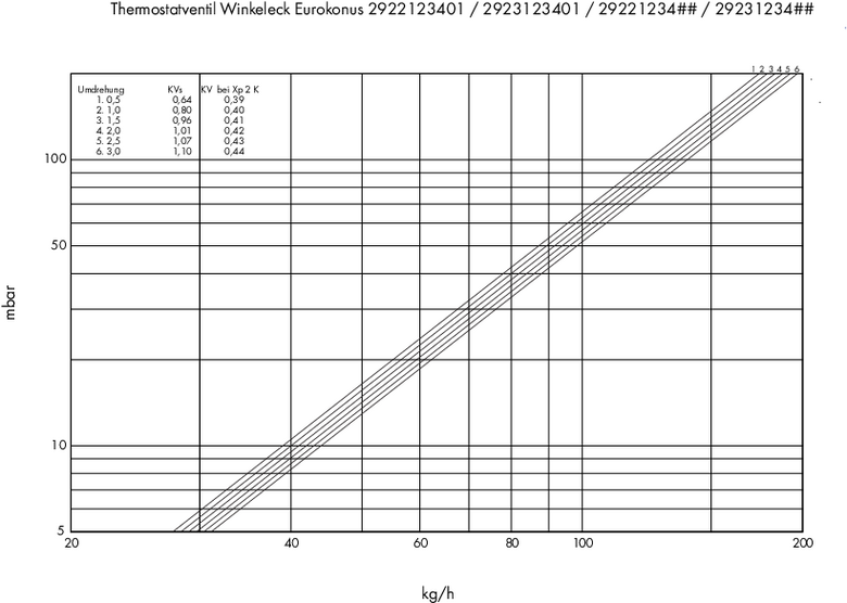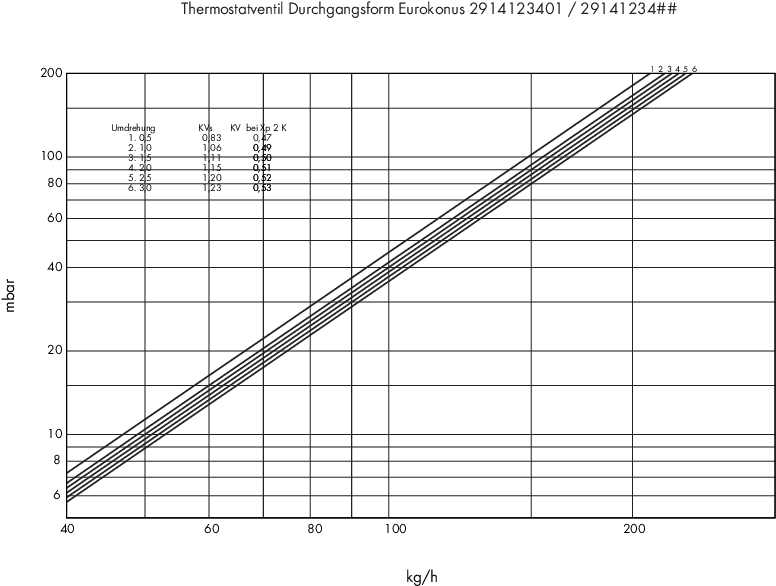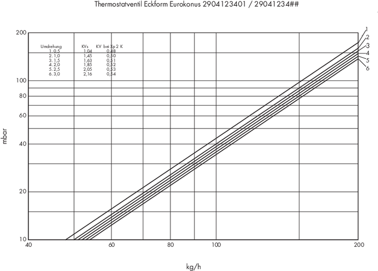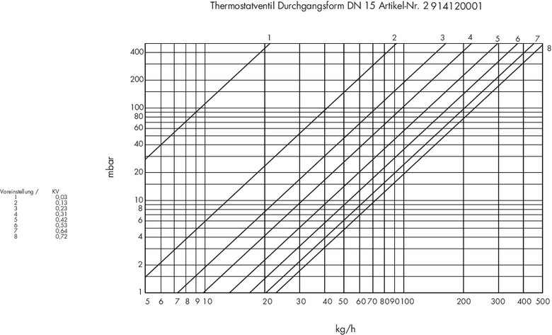 Diagramm für Thermostatventil Einzelanschlussarmatur