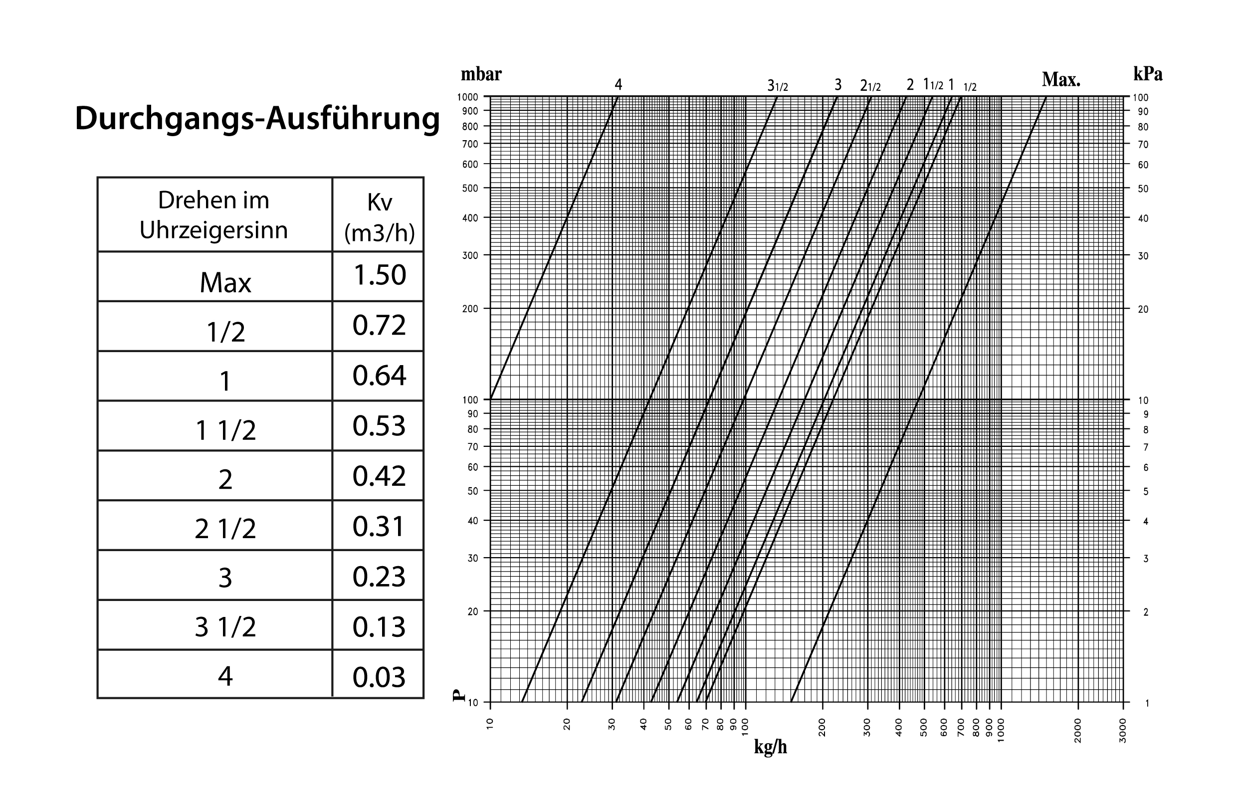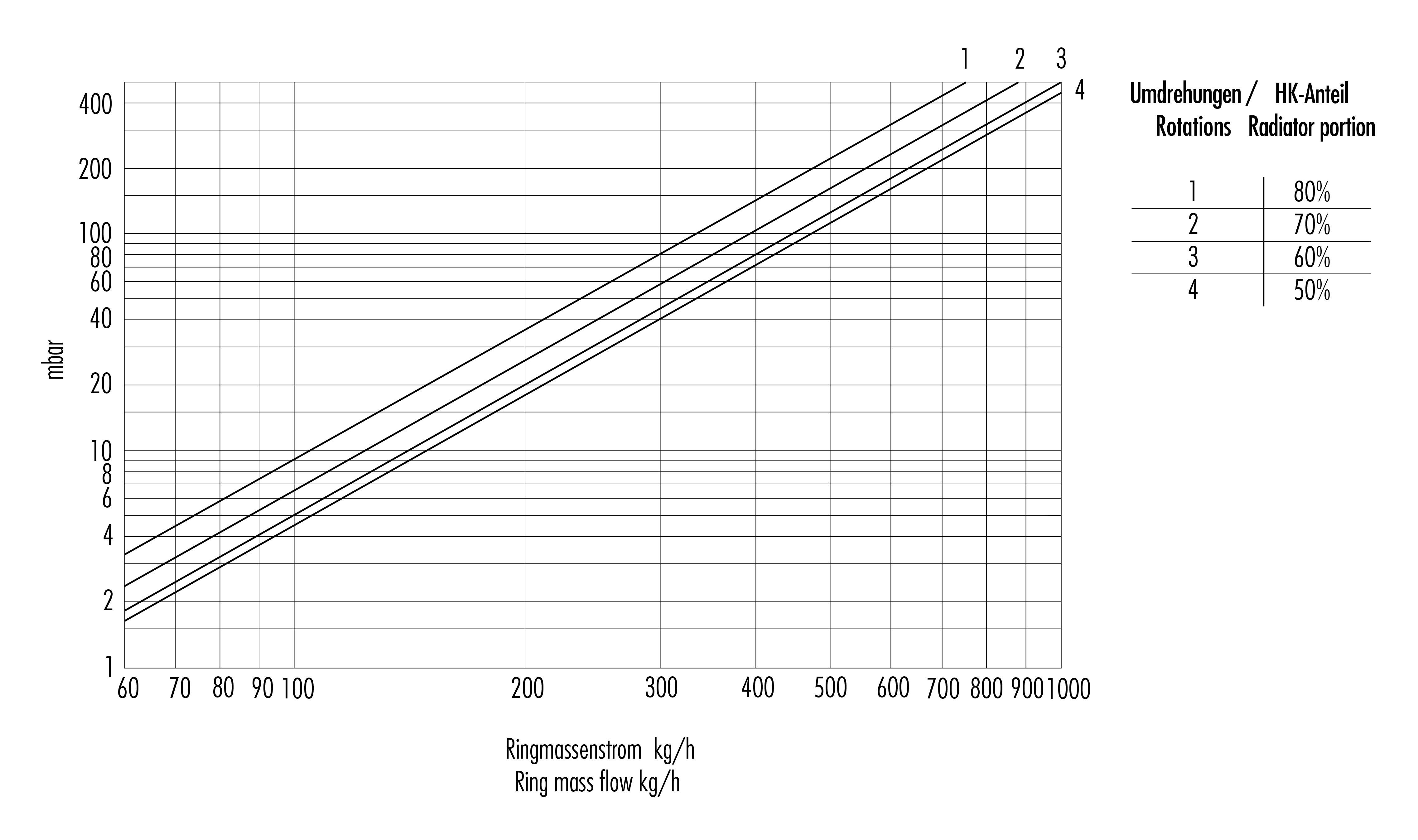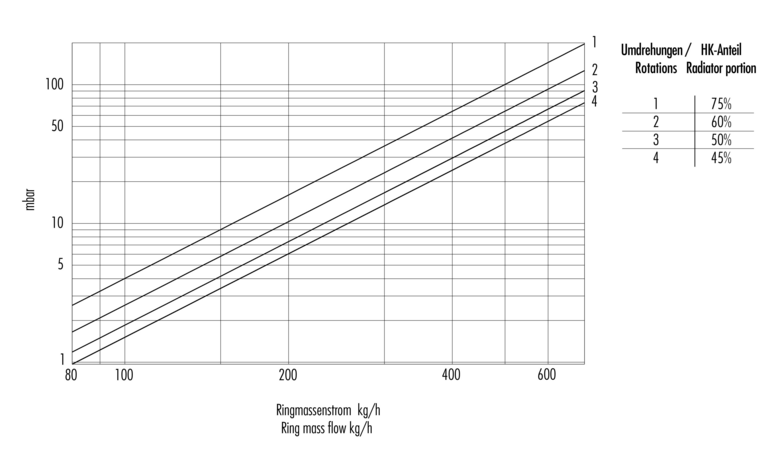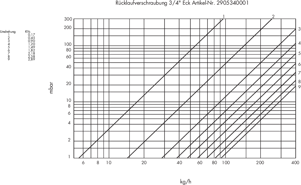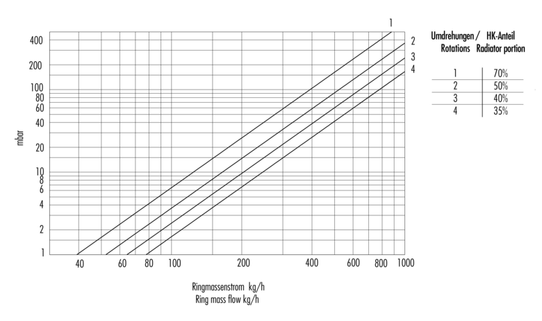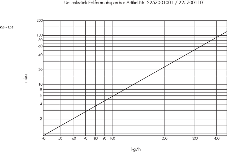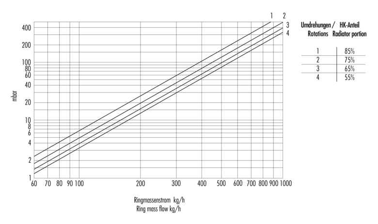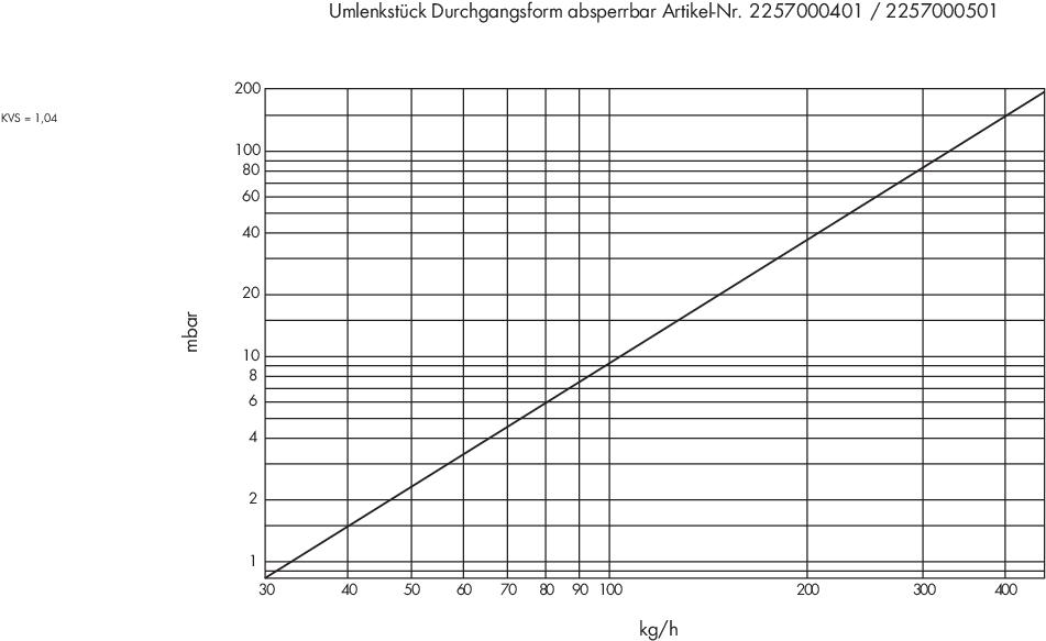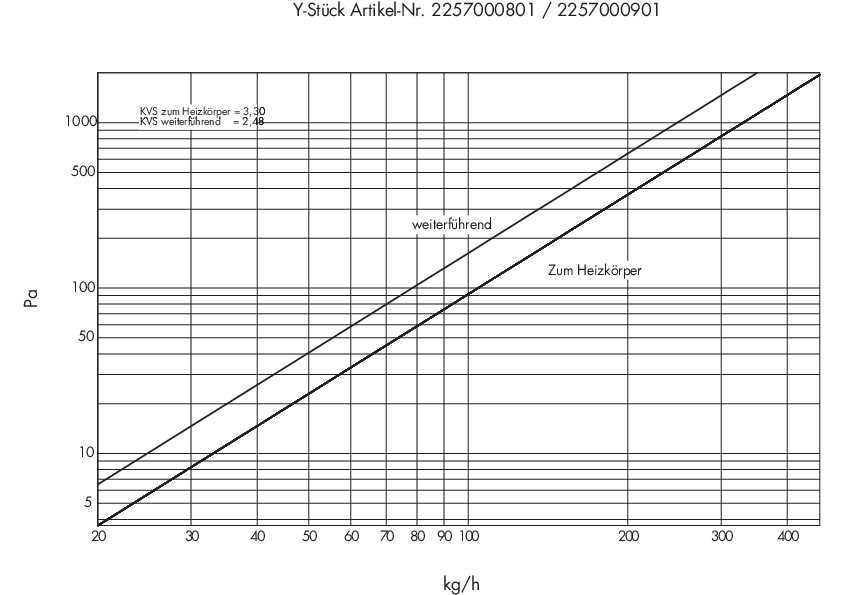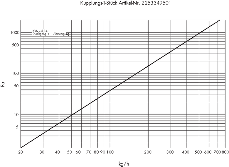 Diagramme für Umlenkstück absperrbar für Einrohr / Zweirohrsysteme
